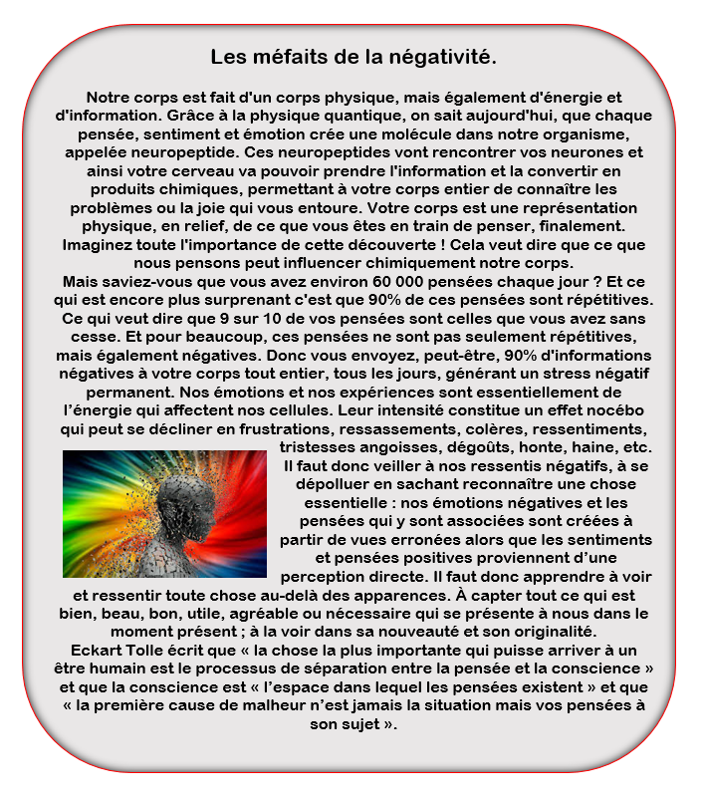 La pensée positive sera enfin liée à la visualisation créative. Dans l'approche de Nassim Haramein,
