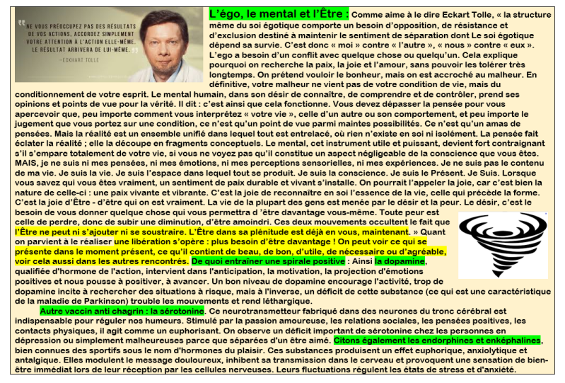 Pourquoi ne pas alors apprendre à écouter intensément ? À suivre cette essence-information- énergie qui nous indique les meilleurs chemins à prendre tout en nous garantissant le libre arbitre, c’est-à-dire la non-ingérence et la non-imposition ?